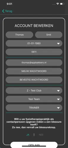Een sporter kan zich via de app verbinden met zijn fysiotherapie praktijk en een melding sturen als hij of zij een blessure heeft. De fysiotherapeut kan dan contact opnemen om te zien of behandeling gewenst is.